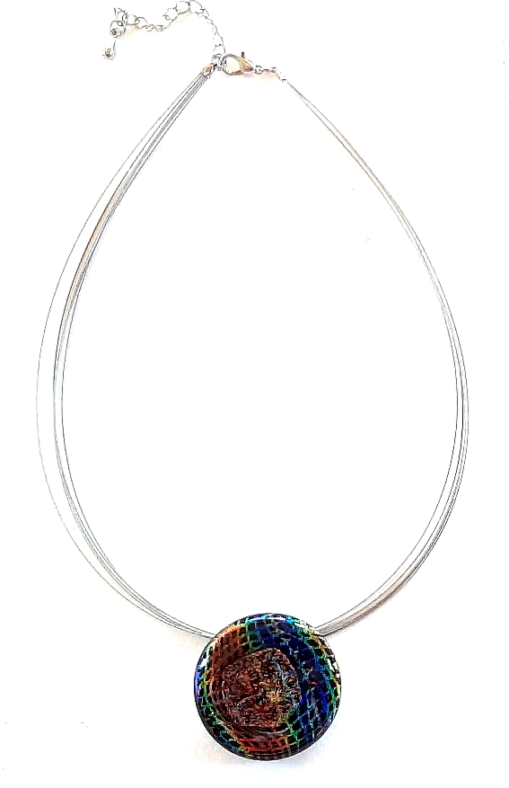 Alle Schmuckstücke sind Arbeiten der Galerie Glaswerk. Kleine Glaselemente, werden im Schmelzofen unter hohen Temperaturen zugeschmolzen oder in freier Formgebung vor dem Glasbrenner gestaltet. Durch Klarglasschichten entsteht eine starke Tiefenwirkung und sehr schöne Reflektionseffekte.
