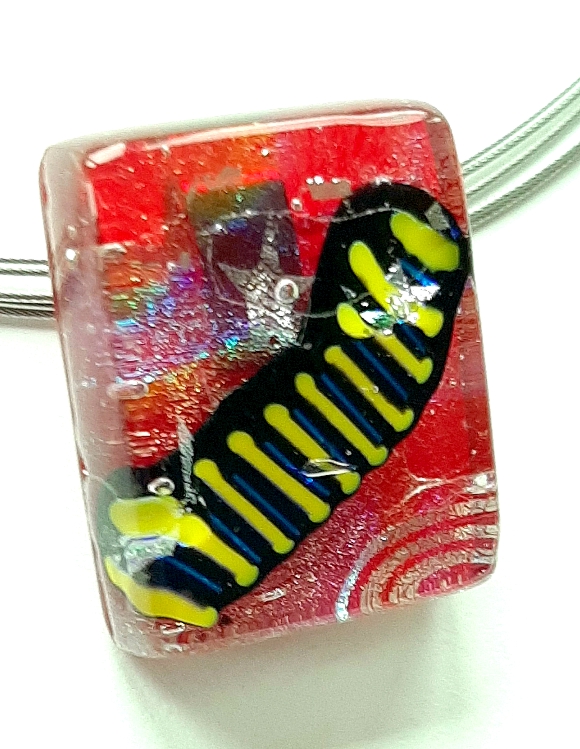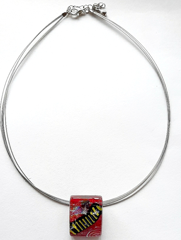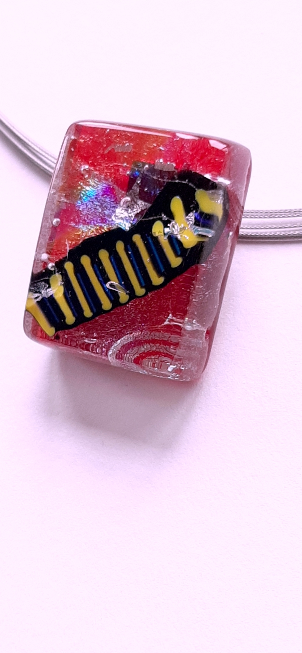 Alle Schmuckstücke sind Arbeiten der Galerie Glaswerk. Kleine Glaselemente, werden im Schmelzofen unter hohen Temperaturen zugeschmolzen oder in freier Formgebung vor dem Glasbrenner gestaltet. Durch Klarglasschichten entsteht eine starke Tiefenwirkung und sehr schöne Reflektionseffekte.
