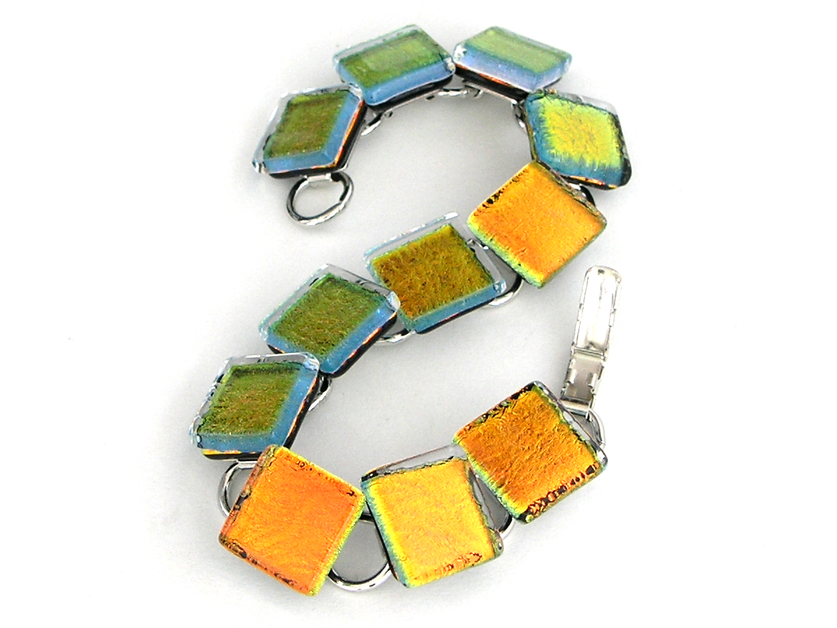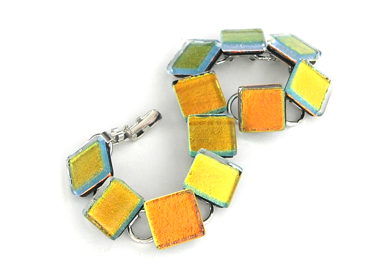 Die Modeschmuck Glaselemente dieser Armbänder sind mit einer Reihe Verarbeitungstechniken gefertigt um sehr haltbare Schmuckanhänger herzustellen. Trotzdem weisen sie den Charakter des leichten, lichtdurchfluteten Materials auf. Die Fusingtechnik ist eine dieser Arbeitsmethoden um solch robuste Einzelstücke aus Glas zu fertigen. Bei der sogenannten Fusingtechnik oder Fusen (in deutsch "verschmelzen") werden zuvor gearbeitete Glasstücke bei ca. 780–900 °C miteinander als zähflüssige, amorphe Masse verbunden, die bei der sanften Abkühlung zu einem festen und robusten Stück erstarrt. Die Temperaturen zur Verschmelzung sind immer von der Zusammensetzung des Glases und seiner Materialstärke, sowie dem gewünschten Resultat abhängig. Da es sich bei den Direct Schmuckstücken um massives Glas handelt, sind die Glassteine schon von sich aus schon sehr viel stabiler als ein hohles Glasobjekt es jemals sein kann.