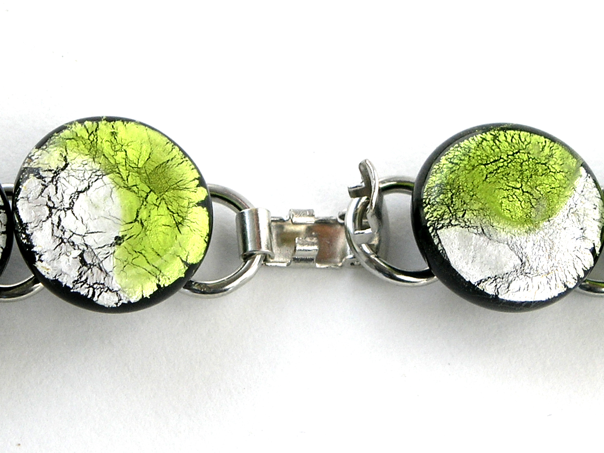 Das farbig- transparente Glas in den Farben peridot-silber sorgt jeweils für einen schillernden Glanzeffekt. Jedes Schmuckstück durchläuft während der Produktion mehrere Qualitätskontrollen und Sie können sicher sein, dass Sie ein einmalig gefertigtes, hochwertiges Stück Glasschmuck bekommen. Alle Armketten erhalten Sie von uns in einem gepolsterten und edlen Armschmuck Etui.