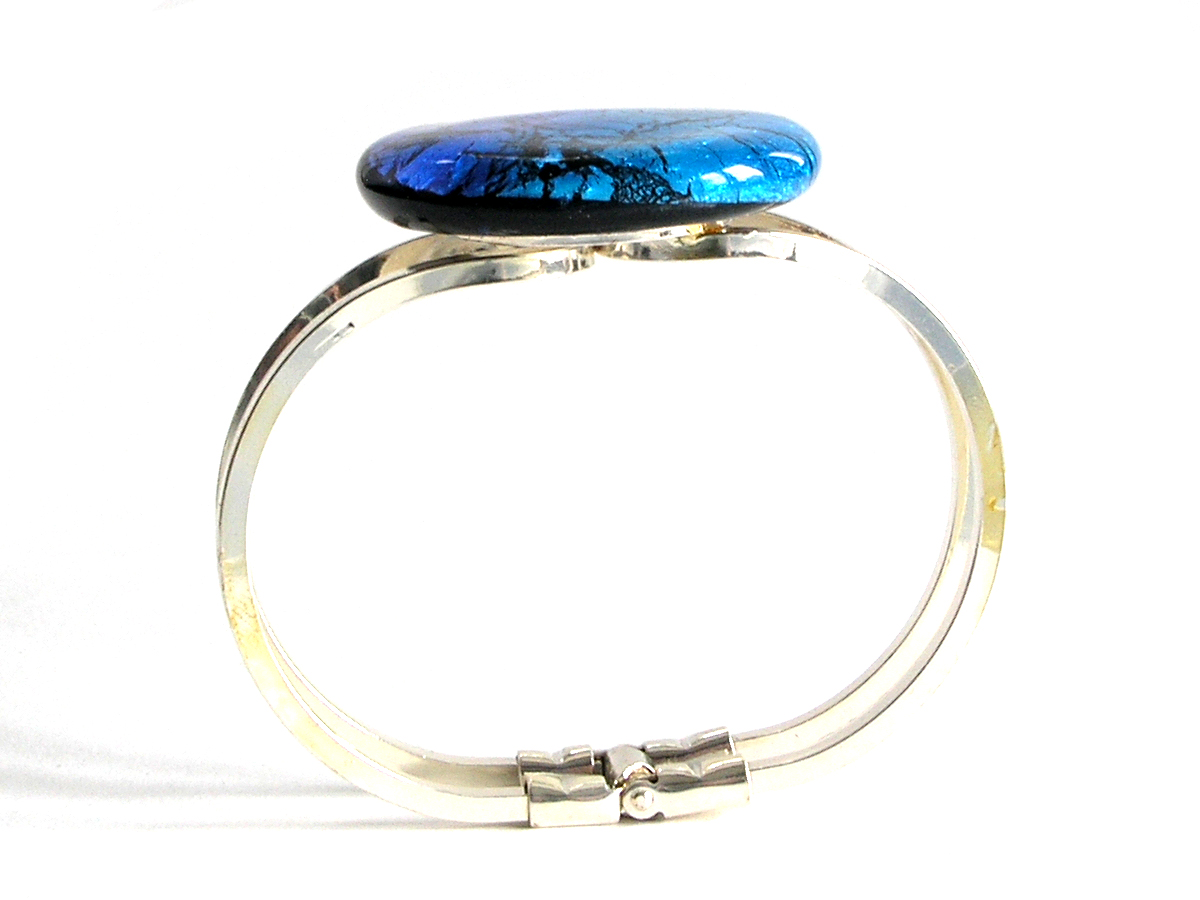 Die Glaselemente sind auf einem versilberten Rohling aus Tombak befestigt. Tombak ist eine (Messing-) Legierung aus 90 % Kupfer und 10 % Zink. Es hat die gleiche Ausdehnung wie Goldlegierungen und wird deshalb oft als Unterlagenmetall bei Schmuckstücken verwendet.