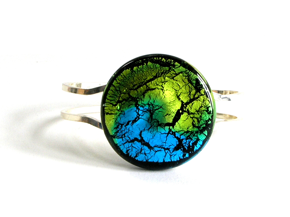 Die Glaselemente sind auf einem versilberten Rohling aus Tombak befestigt. Tombak ist eine (Messing-) Legierung aus 90 % Kupfer und 10 % Zink. Es hat die gleiche Ausdehnung wie Goldlegierungen und wird deshalb oft als Unterlagenmetall bei Schmuckstücken verwendet.