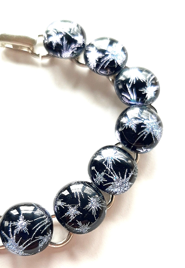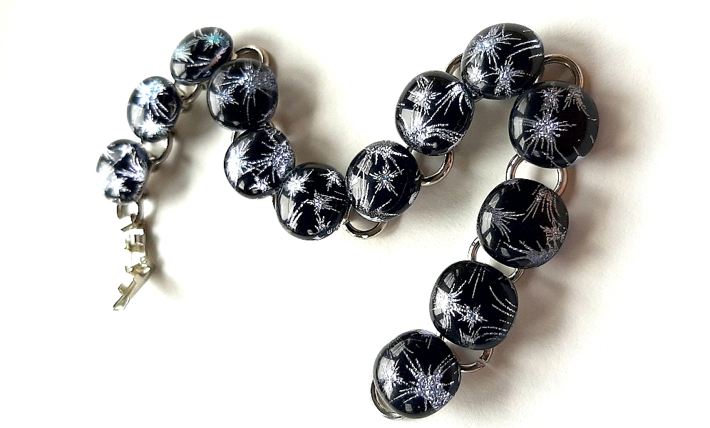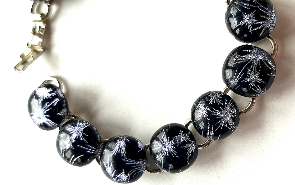 Alle Schmuckstücke sind Arbeiten der Galerie Glaswerk. Kleine Glaselemente, werden im Schmelzofen unter hohen Temperaturen zugeschmolzen oder in freier Formgebung vor dem Glasbrenner gestaltet. Durch Klarglasschichten entsteht eine starke Tiefenwirkung und sehr schöne Reflektionseffekte.