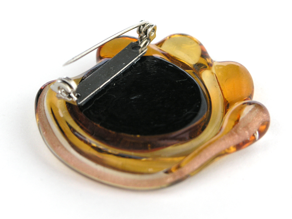 Das Glaselement ist auf einem rhodinierten Rohling aus Tombak befestigt. Tombak ist eine (Messing-) Legierung aus 90 % Kupfer und 10 % Zink. Es hat die gleiche Ausdehnung wie Goldlegierungen und wird deshalb oft als Unterlagenmetall bei Schmuckstücken verwendet.