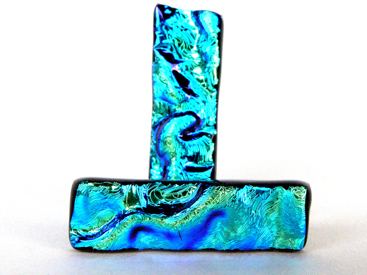 Dichroic Glas sorgt für starke Lichtreflektion und einen einzigartigen Glanz. Dichromatisches Glas wird in einem und äußerst aufwendigen und zeitintensiven Verfahren hergestellt, bei dem im luftleeren Raum dünne Schichten unterschiedlicher Materialien aufgetragen werden. Während „irisierende“ Gläser hohe Verschmelzungstemperaturen nicht aushalten können, ist das Erscheinungsbild von Dichroicbeschichtungen nach dem Brennen sogar noch eindrucksvoller.