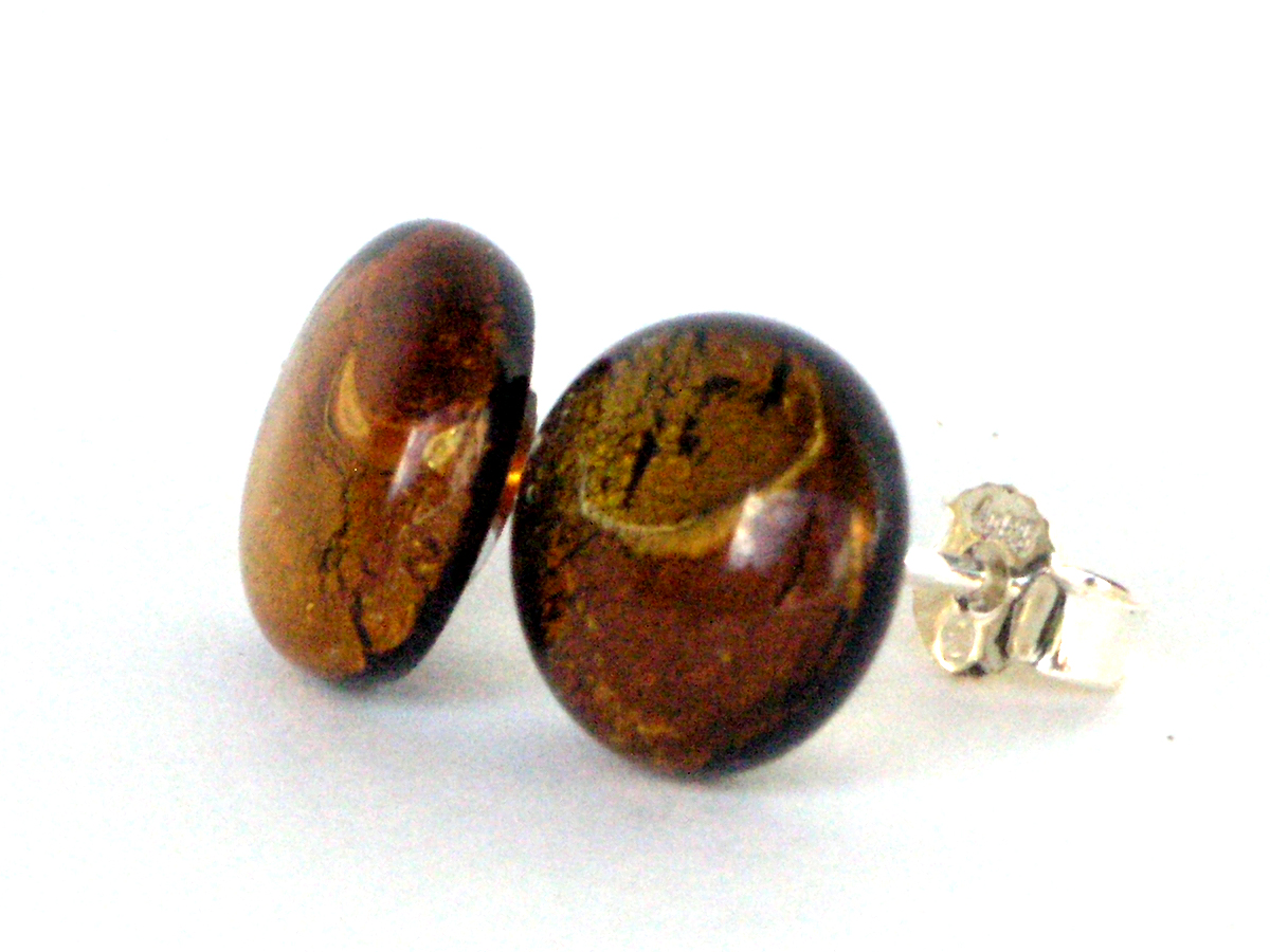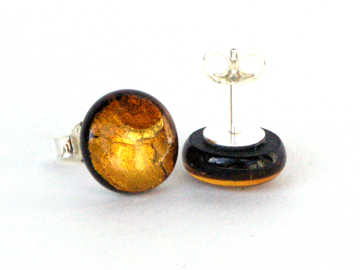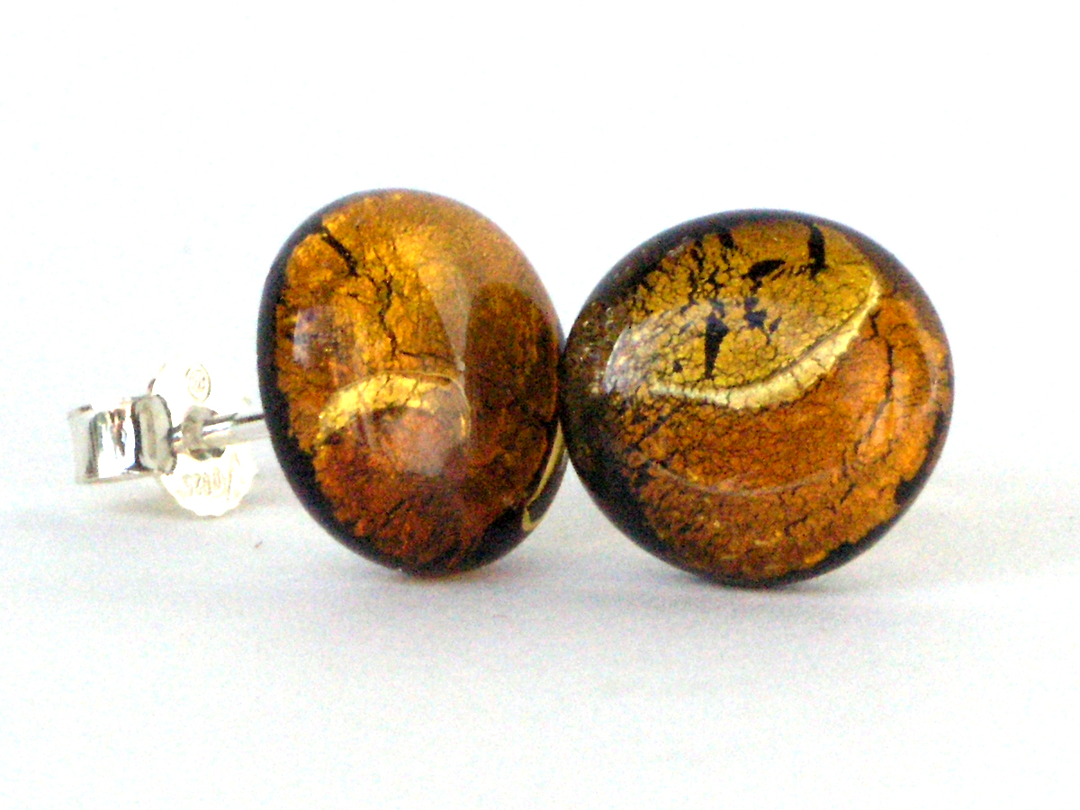Das farbig- transparente Glas, in der Farbe gold sorgt für einen schillernden Glanzeffekt. Jedes Schmuckstück durchläuft in der Produktion mehrere Qualitätskontrollen und Sie können sicher sein, dass Sie ein einmalig gefertigtes, hochwertiges Stück Glasschmuck bekommen. Vor der Verarbeitung als Modeschmuck Ohrstecker wird jede Unterseite mit der Diamant Schleifmaschinen überarbeitet und Unebenheiten werden begradigt. Eine 925 Sterling Silber Ohrstecker Montur wird an der Unterseite befestigt. Der Verwendete Kleber hält 60kg / mm² , ist wasserfest und sogar seifenwasserbeständig. Nach einer letzten Qualitätskontrolle werden die Ohrstecker geputzt und in einem gepolsterten Ohrschmuck Etui sicher verpackt.