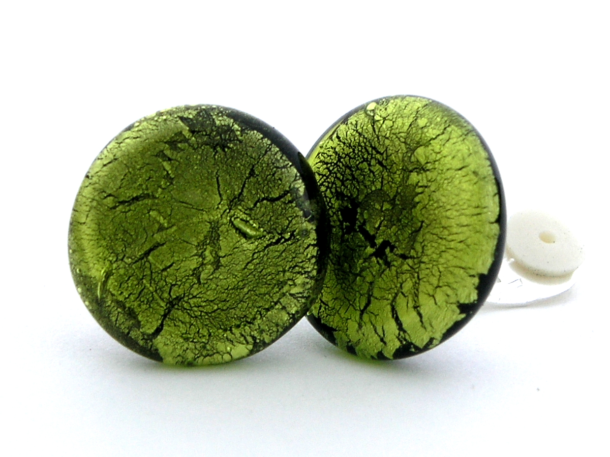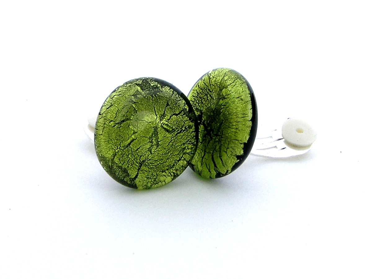 Das farbig- transparente Glas in der Farbe peridot sorgt für einen schillernden Glanzeffekt. Jedes Schmuckstück durchläuft während der Produktion mehrere Qualitätskontrollen und Sie können sicher sein, dass Sie ein einmalig gefertigtes, hochwertiges Stück Glasschmuck bekommen. Vor der Verarbeitung als Modeschmuck Ohrclip wird jede Unterseite mit der Diamantschleifmaschine überarbeitet und Unebenheiten werden begradigt. Die Monturen dieser Ohrclips sind aus Tombak. Der sichere Schnappverschluss und das zusätzliche Gummipolster sorgen für einen hohen und sicheren Tragekomfort am Ohr. Der verwendete Kleber hält 60kg / mm² , ist wasserfest und sogar seifenwasserbeständig. Nach einer letzten Qualitätskontrolle wird der Ohrschmuck geputzt und in einem gepolsterten Schmuck Etui sicher verpackt.