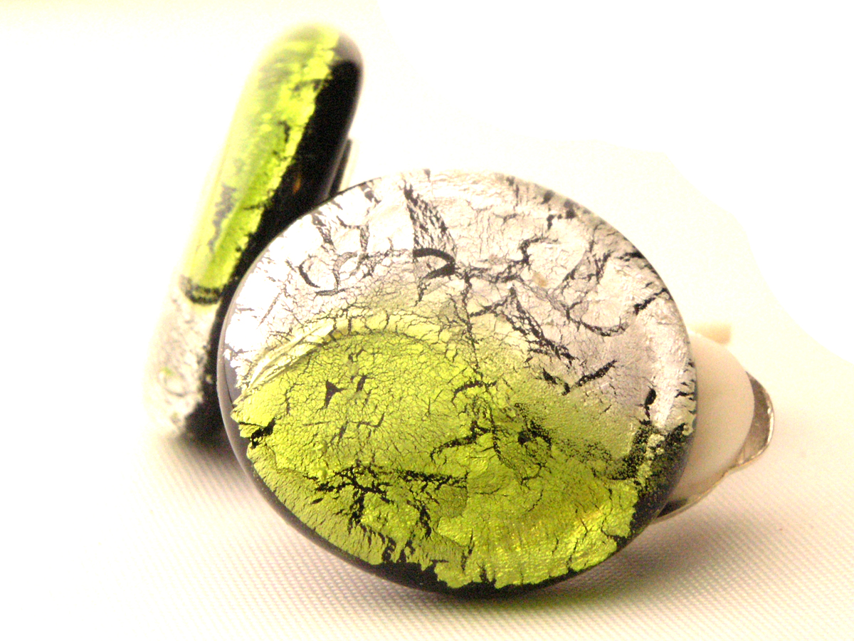 Die Formgebung der Glaselemente entsteht in freier Gestaltung vor dem Glasbrenner. Rainer Schrade, Glaskünstler der Galerie Glaswerk , verwendet zur Herstellung farbige Murano Glasstäbe die mit Blattsilber, Blattgold und Aventurin unter hohen Temperaturen zu diesen Modeschmuck Unikaten geformt werden.