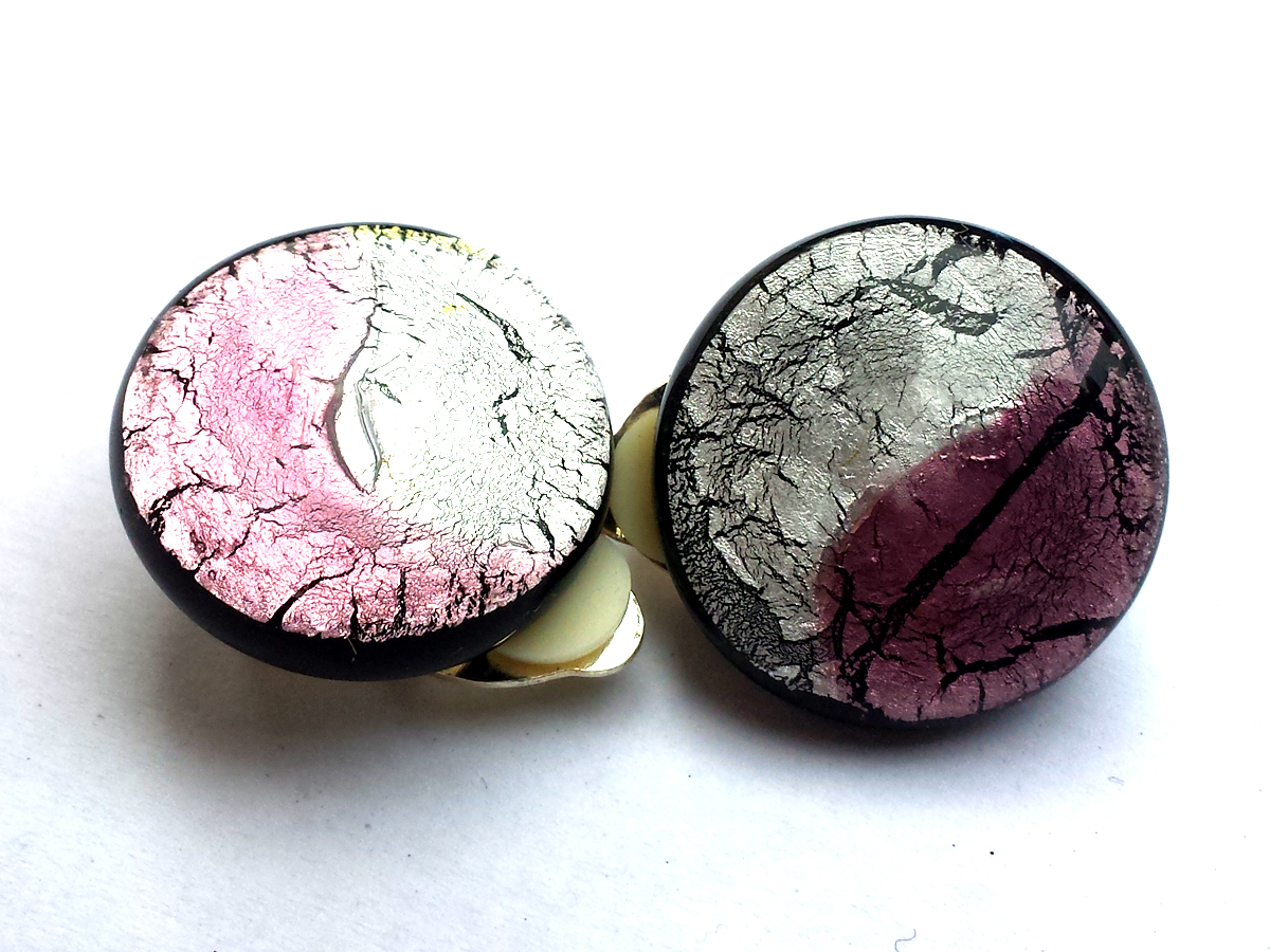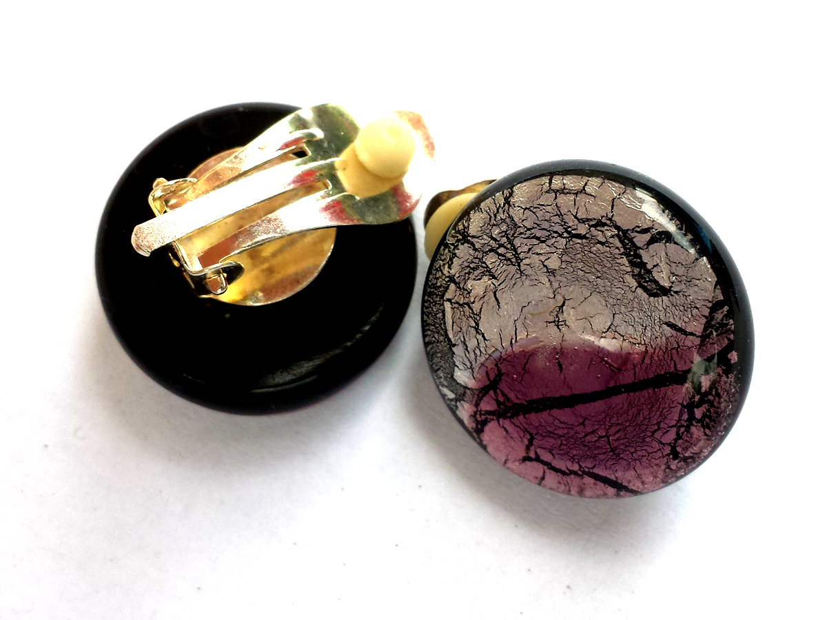 Das farbig- transparente Glas in den Farben rose silber sorgt für einen schillernden Glanzeffekt. Jedes Schmuckstück durchläuft während der Produktion mehrere Qualitätskontrollen und Sie können sicher sein, dass Sie ein einmalig gefertigtes, hochwertiges Stück Glasschmuck bekommen. Vor der Verarbeitung als Modeschmuck Ohrclip wird jede Unterseite mit der Diamantschleifmaschine überarbeitet und Unebenheiten werden begradigt. Die Monturen dieser Ohrclips sind aus Tombak. Der sichere Schnappverschluss und das zusätzliche Gummipolster sorgen für einen hohen und sicheren Tragekomfort am Ohr. Der verwendete Kleber hält 60kg / mm² , ist wasserfest und sogar seifenwasserbeständig. Nach einer letzten Qualitätskontrolle wird der Ohrschmuck geputzt und in einem gepolsterten Schmuck Etui sicher verpackt.