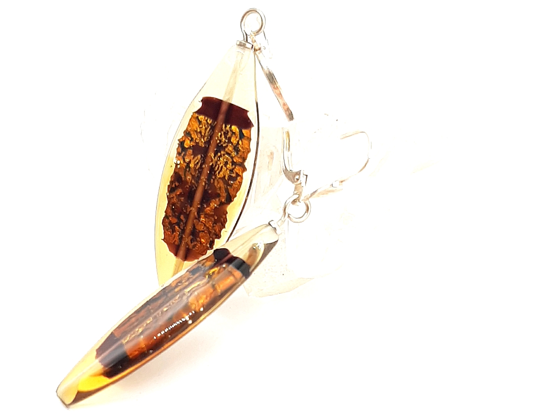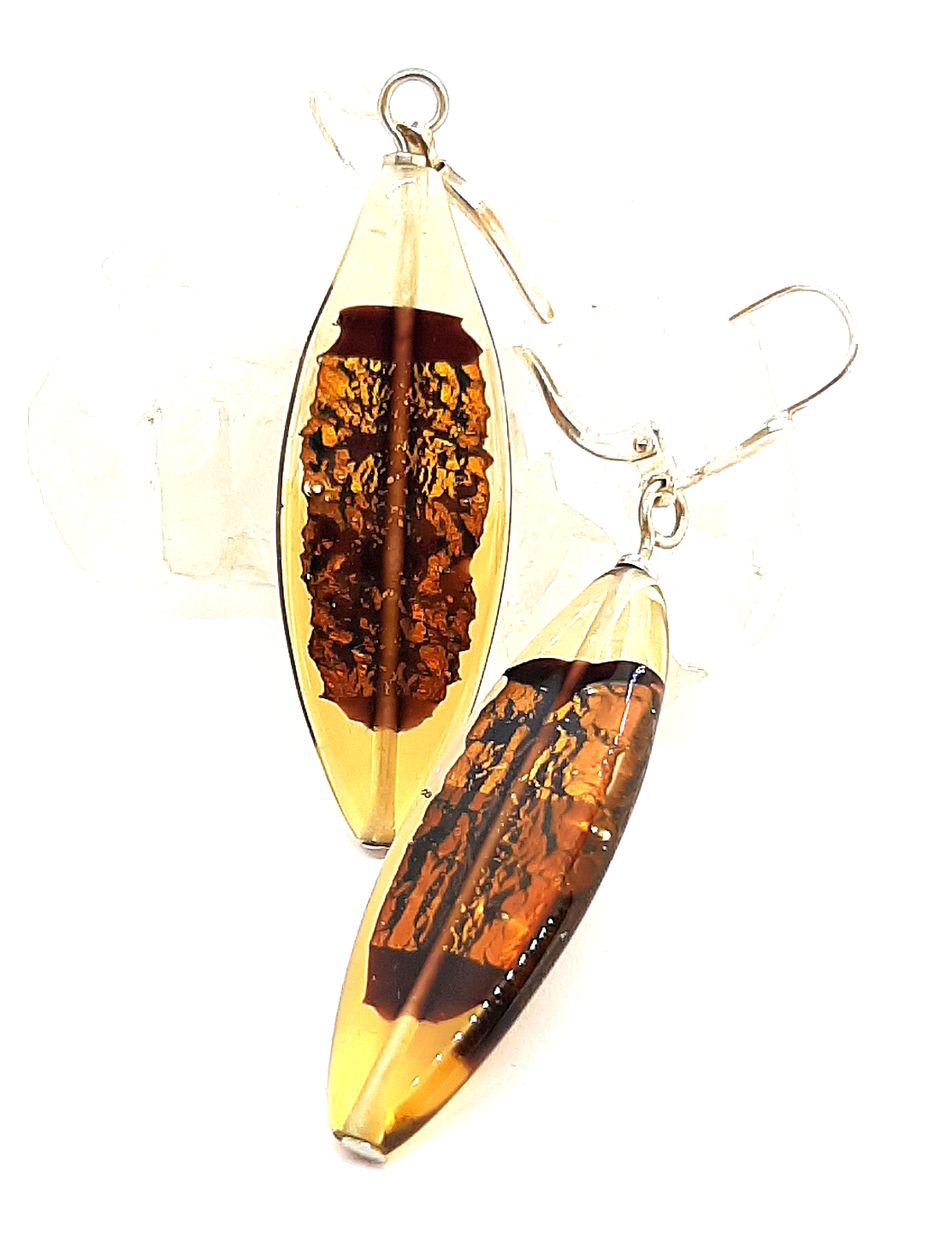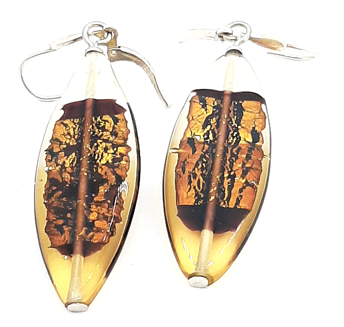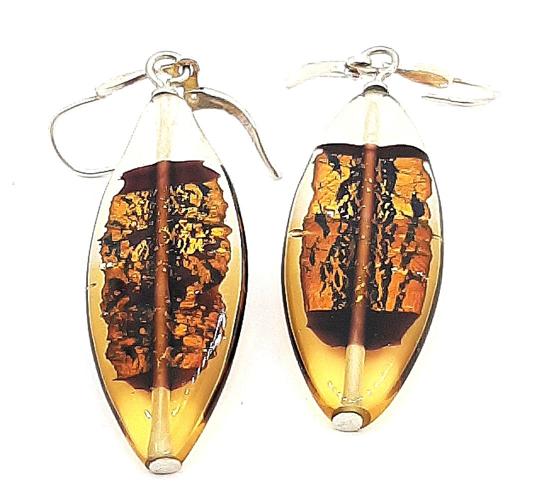 Die Midnight Ohrhänger werden wie eine Glasperle vor der Glasbläserlampe gestaltet. Feines Blattsilber wird mit Farbglas überzogen und danach geformt.