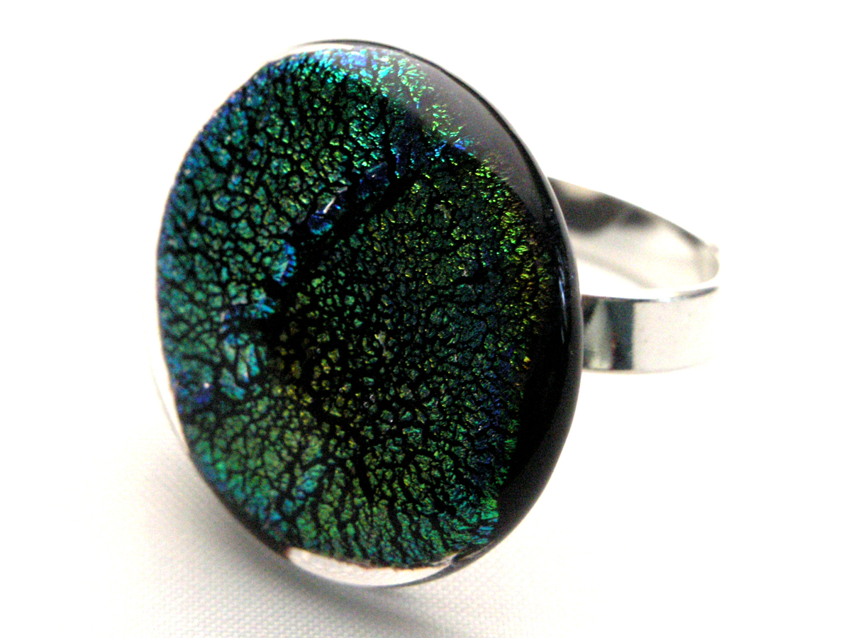 Jedes Schmuckstück durchläuft in der Produktion mehrere Qualitätskontrollen und Sie können sicher sein, dass Sie ein einmalig gefertigtes, hochwertiges Stück Glasschmuck bekommen. Vor der Verarbeitung als Modeschmuck Fingerring wird jede Unterseite mit der Diamant Schleifmaschinen überarbeitet und Unebenheiten werden begradigt. Eine 925 Sterlingsilber Ring Montur in der Größe 17mm (verstellbar) wird an der Unterseite befestigt. Der Verwendete Kleber hält 60kg / mm² , ist wasserfest und sogar seifenwasserbeständig. Nach einer letzten Qualitätskontrolle wird der Handschmuck geputzt und in einem gepolsterten Ring Etui sicher verpackt.