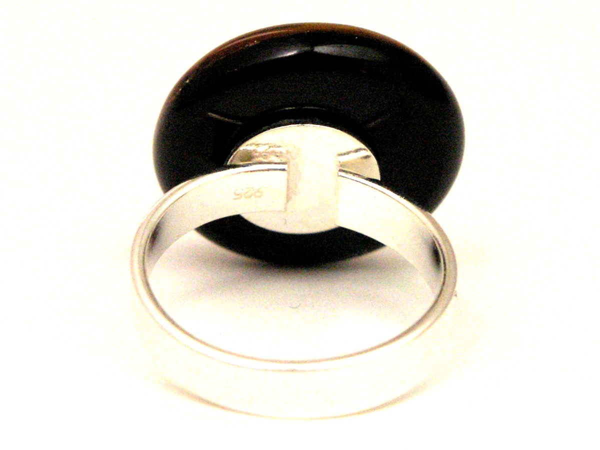 Die Ringmontur ist aus 925 Sterling Silber und in der Größe leicht Verstellbar. Der Durchmesser dieser Ringe ist 17mm, wobei die Ringschiene unter dem Glaselement eine Öffnung hat um sie ca. (+) 1-2 mm in der Größe zu verändern. Diese Anpassung kann der Träger / die Trägerin vorsichtig selber vornehmen.