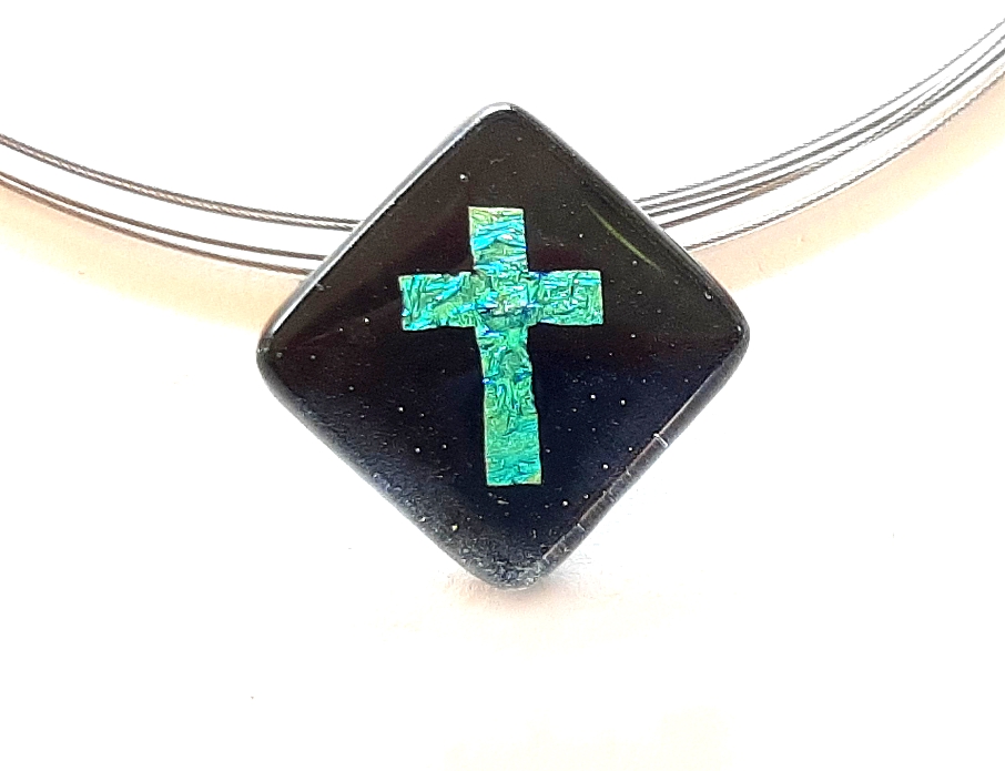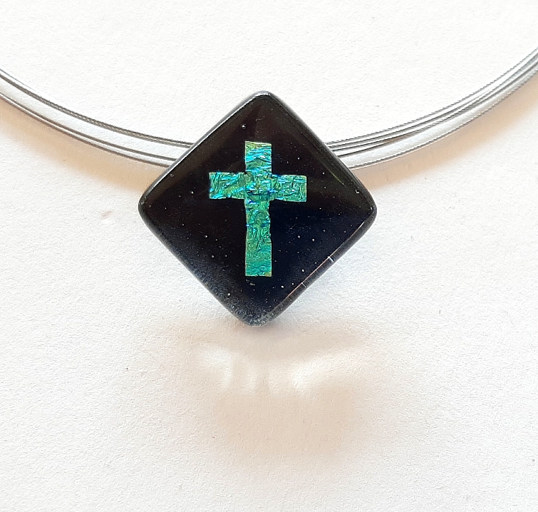 Produktinformationen "Halskette Schwarz Kreuz Türkis"