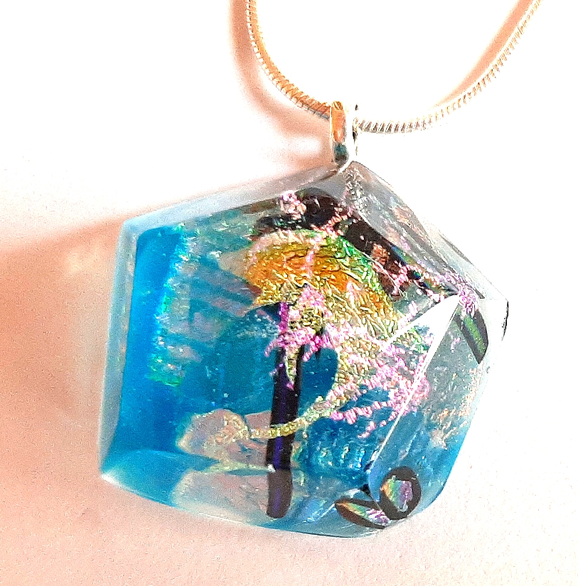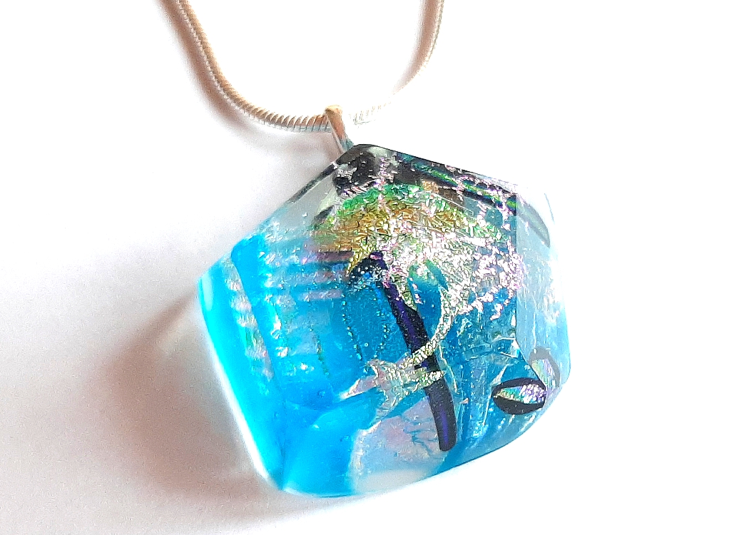 Herstellungstechnik Glasfusing, Schmuck mit Diamant Schleifen und sanfte Abkühlung im Kühlofen.