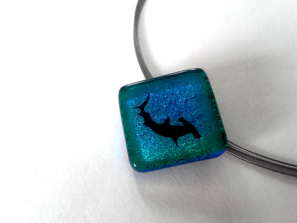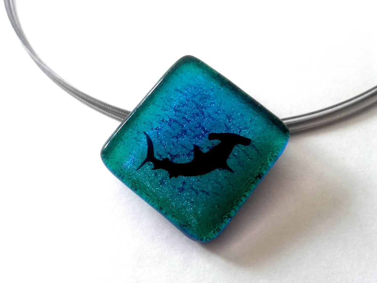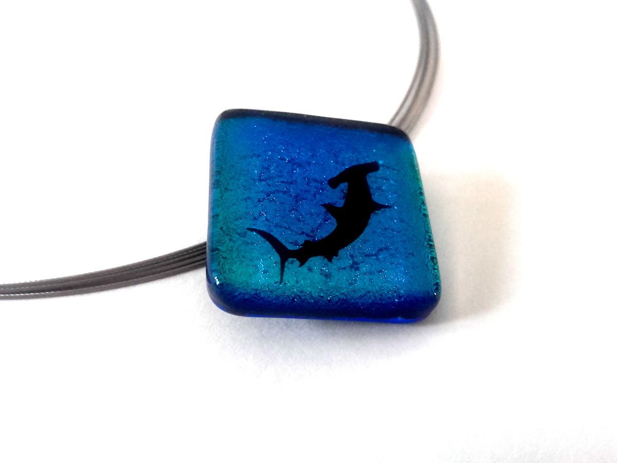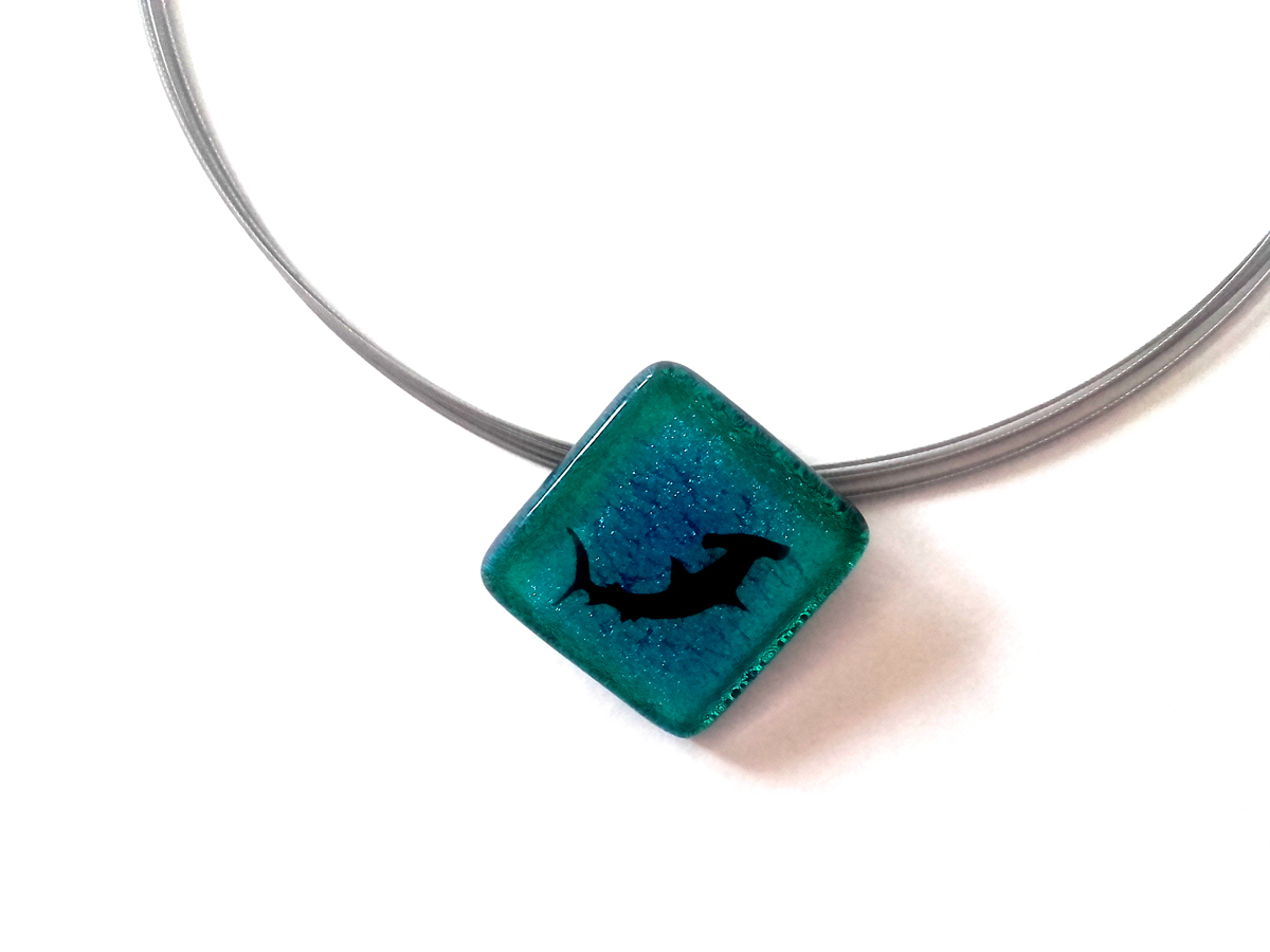 Für die Taucherschmuck Kettenanhänger der Serie Oceanic Shadow werden in zuvor aufwendiger Kleinarbeit hergestellte Fusingelemente mit transparentem Glas überzogen. Rainer Schrade, Glaskünstler (und selber begeistertet Taucher) der Galerie Glaswerk, fertigt diese Schmuckunikate aus Glas. Seine Leidenschaft, das Tauchen, inspirierte ihn zur Herstellung von einzigartigem Taucherschmuck. Die Serie bietet eine Vielzahl an Motiven der Unterwasserwelt. Neben Hai, Rochen, Schildkröte, Seepferd und anderen Meeresbewohneren gibt es auch maritime Motive wie Katamarane oder Boote.