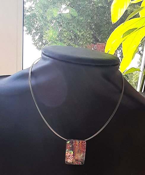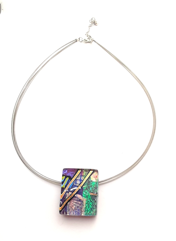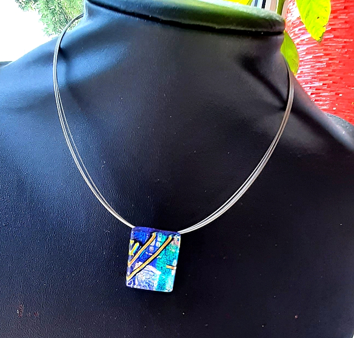 Alle Schmuckstücke sind Arbeiten der Galerie Glaswerk. Kleine Glaselemente, werden im Schmelzofen unter hohen Temperaturen zugeschmolzen oder in freier Formgebung vor dem Glasbrenner gestaltet. Durch Klarglasschichten entsteht eine starke Tiefenwirkung und sehr schöne Reflektionseffekte.