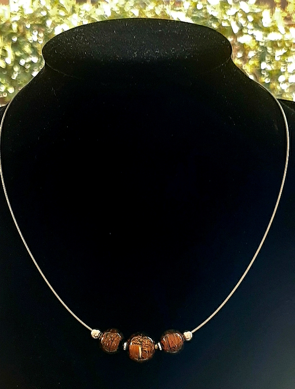 Die Perlen sind auf ein elegantes Collier aus Edelstahl gearbeitet. Der Steckverschluss lässt sich in der Festigkeit einstellen. Die Länge der Kette beträgt ca. 42cm.
