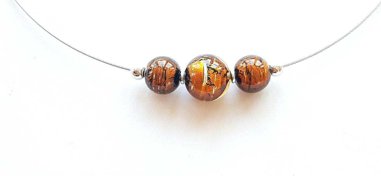 Maße: Mittleres Glaselement mit ca.12mm Durchmesser, 2 weitere Perlen rechts und links mit ca. 10mm