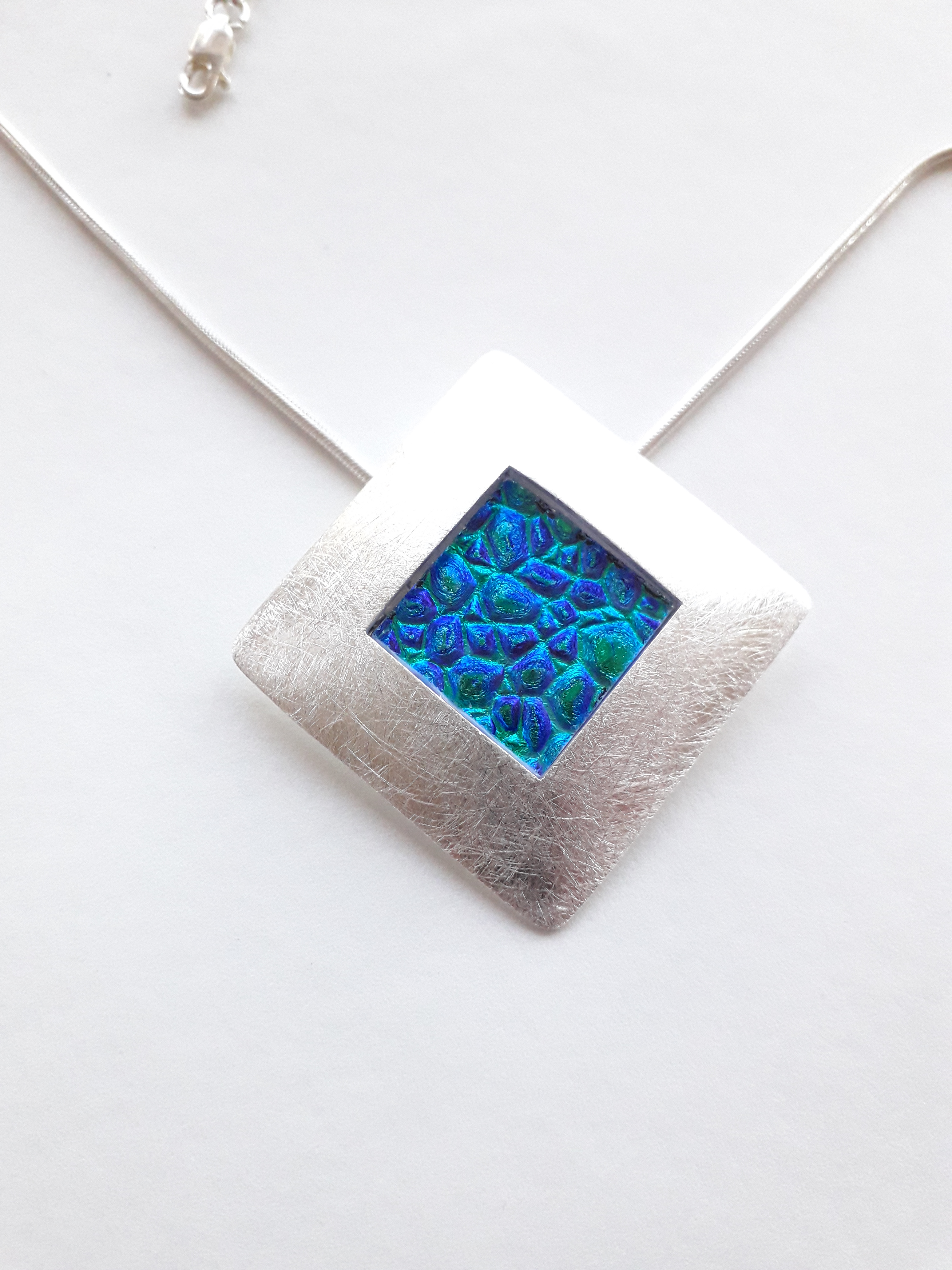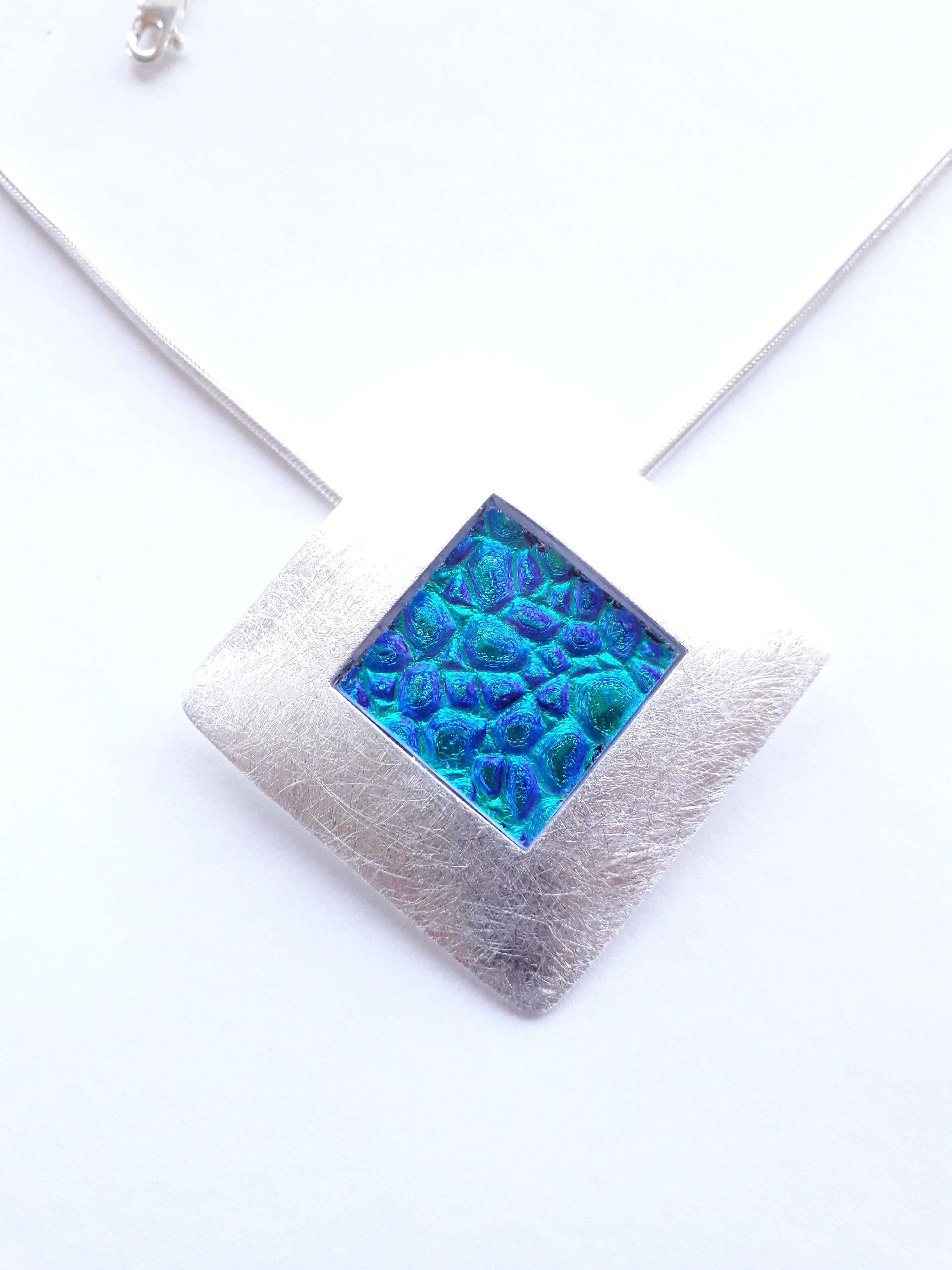 Als Basis für die Echtsilber Glasschmuck Anhänger werden hochwertige 925 Echtsilber Anhänger verwendet. Die Kombination von Aventurin, Silber und/oder Gold, sowie Dichroic Glas auf den Schmuckstücken eröffnet bei verschiedenem Einfall von Licht, eine vielzahl von Farben und Strukturen. Das farbig- transparente Glas, mit dem die Schmucksteine im Echtsilber-Anhänger überzogen werden sorgt für Tiefe, Glanz und wunderschöne Farbeffekteeffekte.