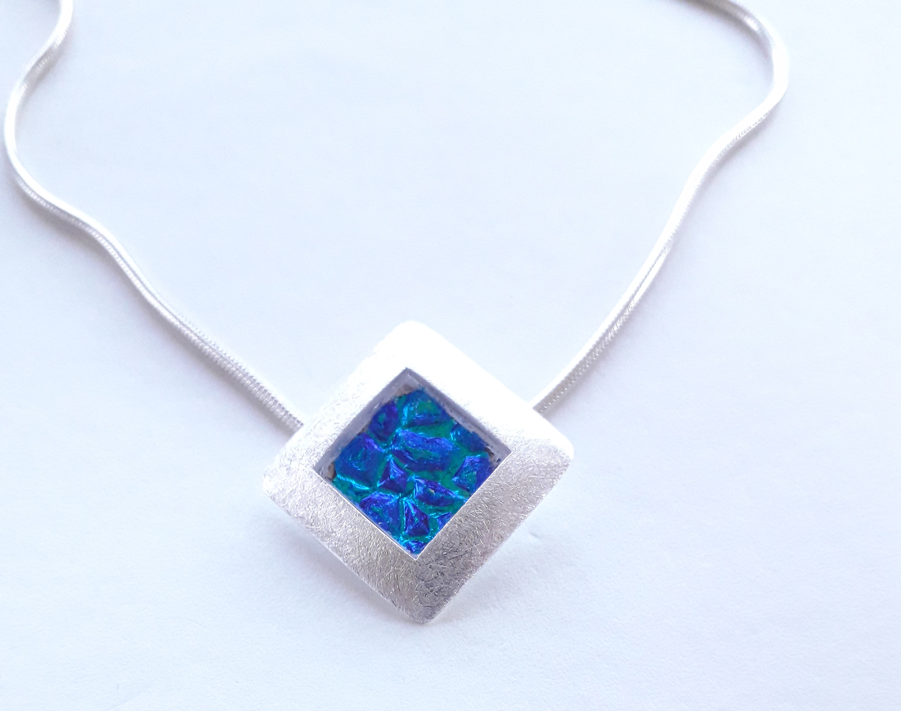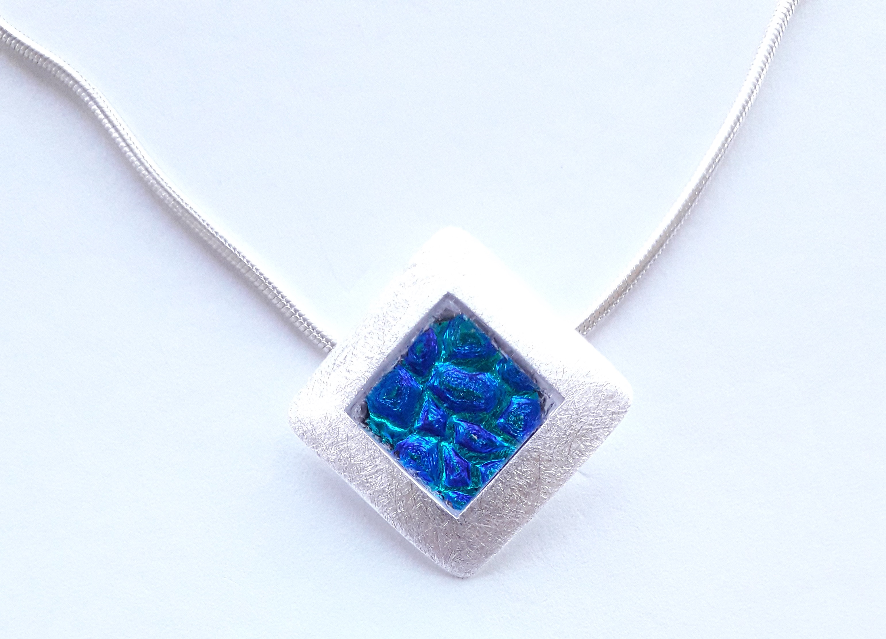 Als Basis für die Echtsilber Glasschmuck Anhänger werden hochwertige 925 Echtsilber Anhänger verwendet. Die Kombination von Aventurin, Silber und/oder Gold, sowie Dichroic Glas auf den Schmuckstücken eröffnet bei verschiedenem Einfall von Licht, eine vielzahl von Farben und Strukturen. Das farbig- transparente Glas, mit dem die Schmucksteine im Echtsilber-Anhänger überzogen werden sorgt für Tiefe, Glanz und wunderschöne Farbeffekteeffekte.