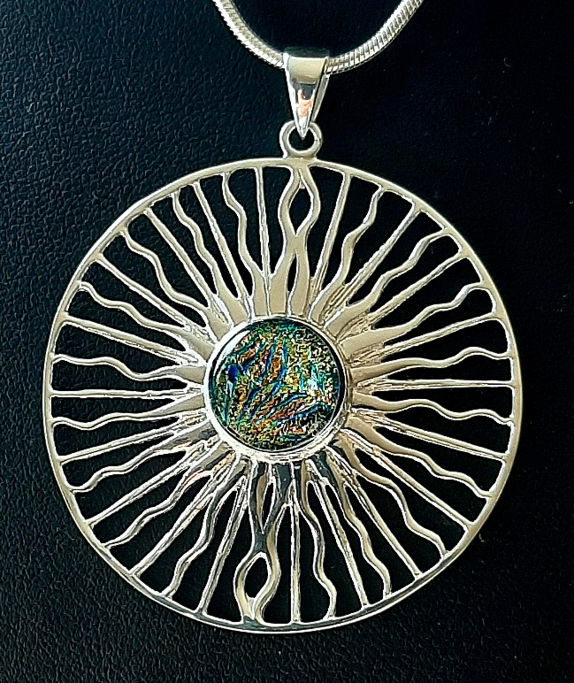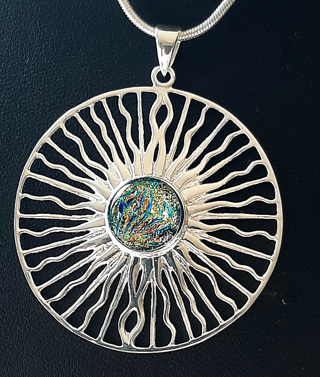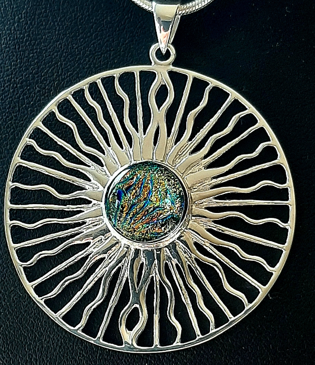 Als Basis für die Echtsilber Glasschmuck Anhänger werden hochwertige 925 Echtsilber Anhänger verwendet. Die Kombination von Aventurin, Silber und/oder Gold, sowie Dichroic Glas auf den Schmuckstücken eröffnet bei verschiedenem Einfall von Licht, eine vielzahl von Farben und Strukturen. Das farbig- transparente Glas, mit dem die Schmucksteine im Echtsilber-Anhänger überzogen werden sorgt für Tiefe, Glanz und wunderschöne Farbeffekteeffekte.