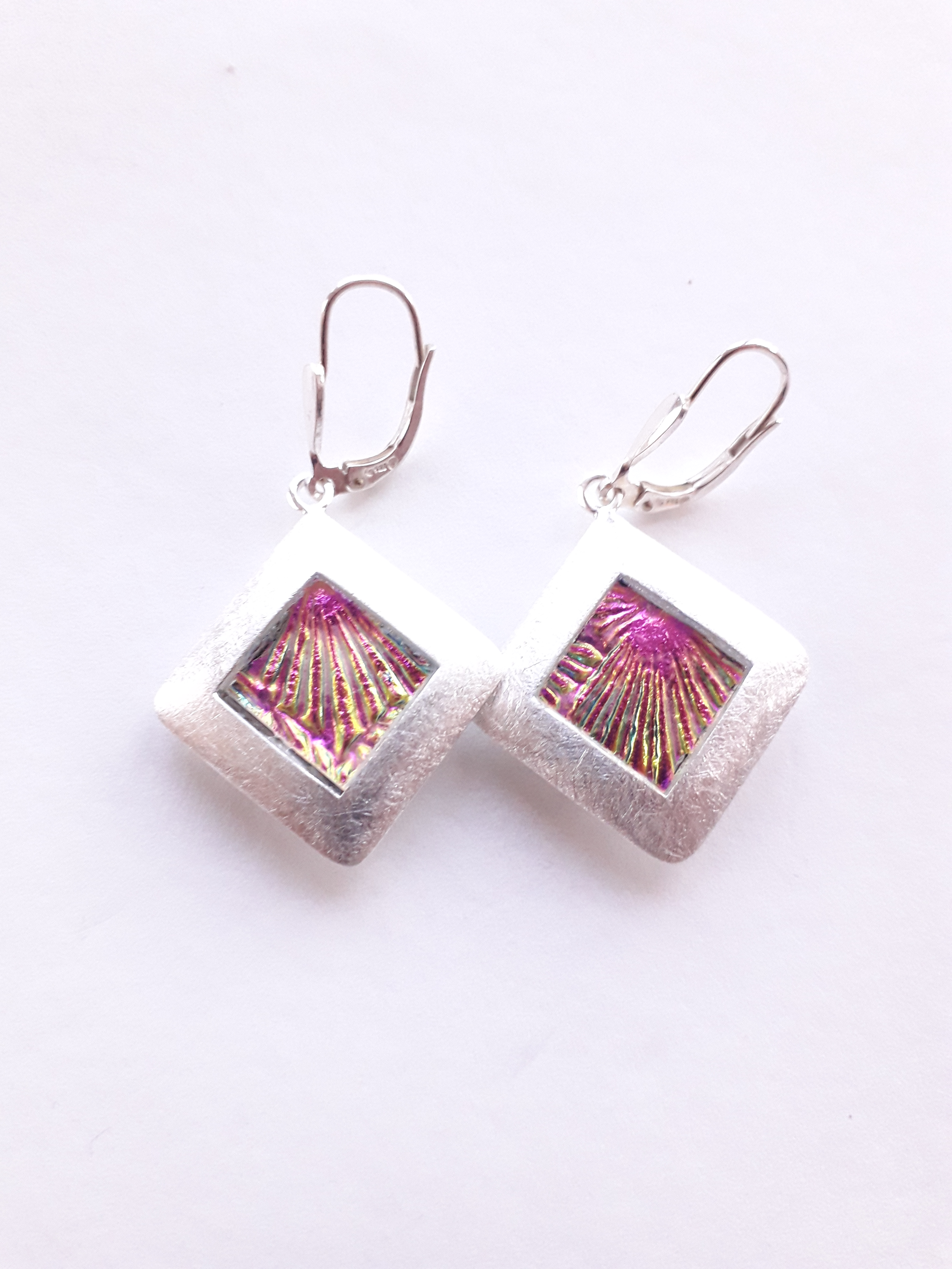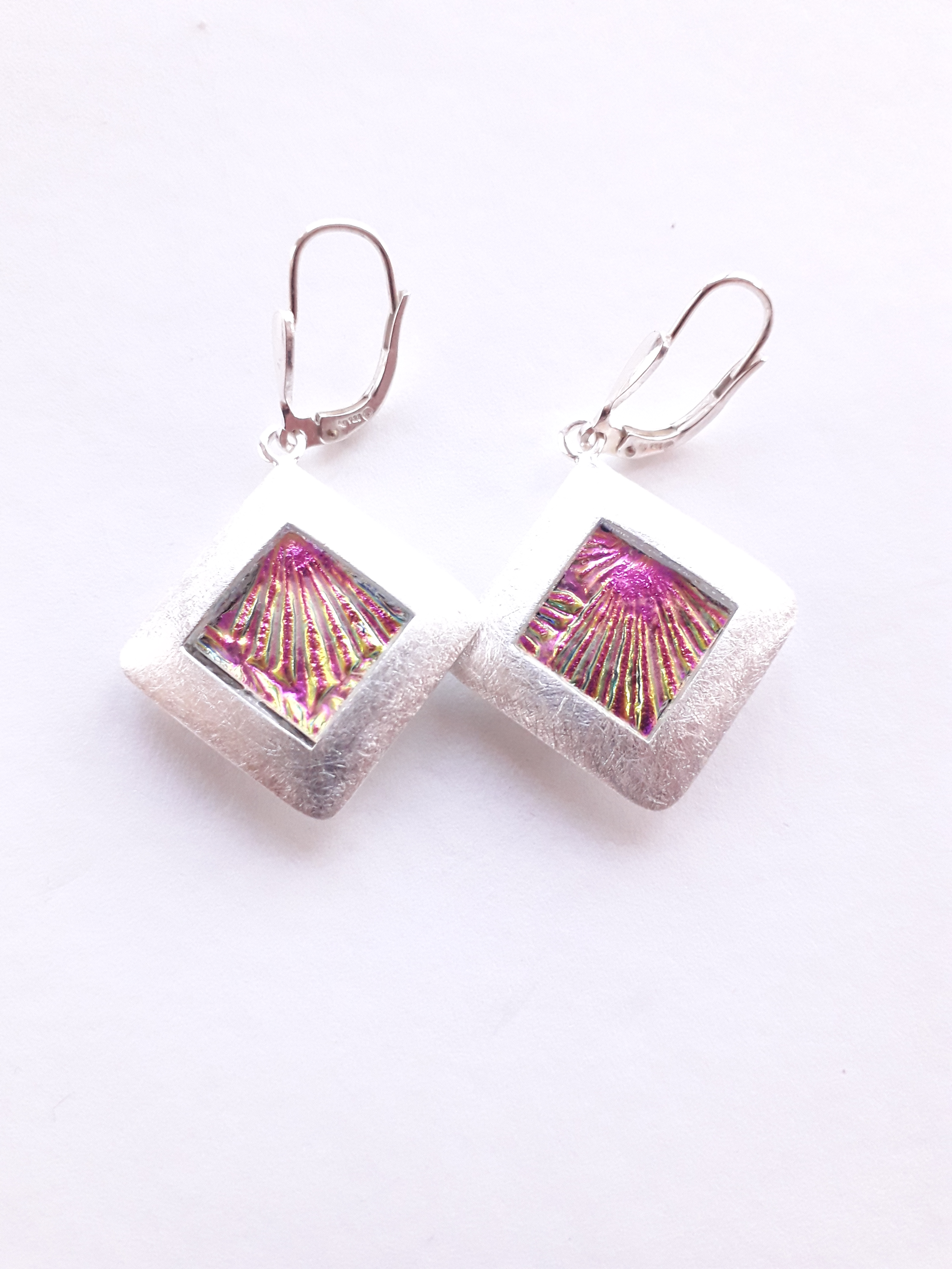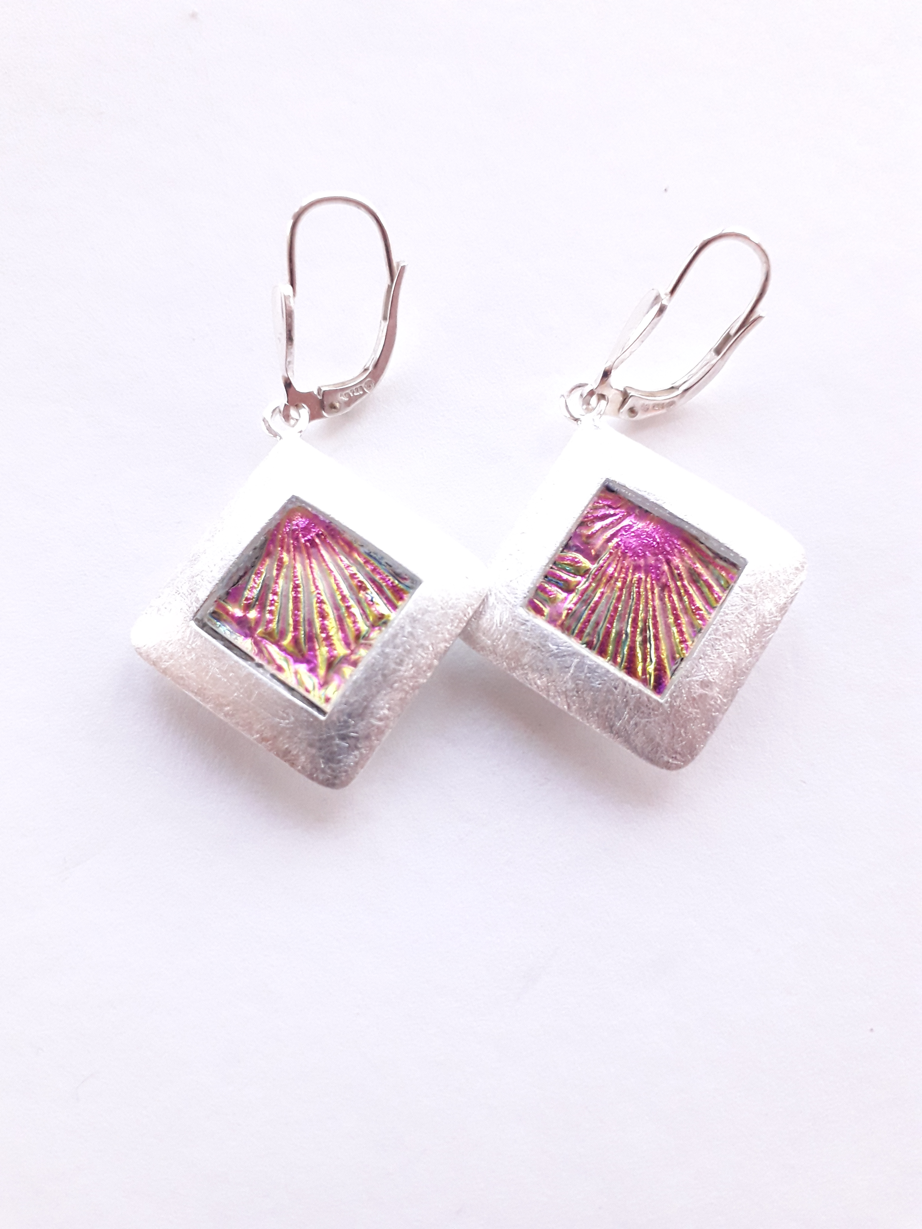 Als Basis für die Echtsilber Glasschmuck Ohrhänger werden hochwertige 925 Echtsilber Anhänger verwendet. Die Kombination von Aventurin, Silber und/oder Gold, sowie Dichroic Glas auf den Schmuckstücken eröffnet bei verschiedenem Einfall von Licht, eine vielzahl von Farben und Strukturen. Das farbig- transparente Glas, mit dem die Schmucksteine im Echtsilber-Anhänger überzogen werden sorgt für Tiefe, Glanz und wunderschöne Farbeffekteeffekte.